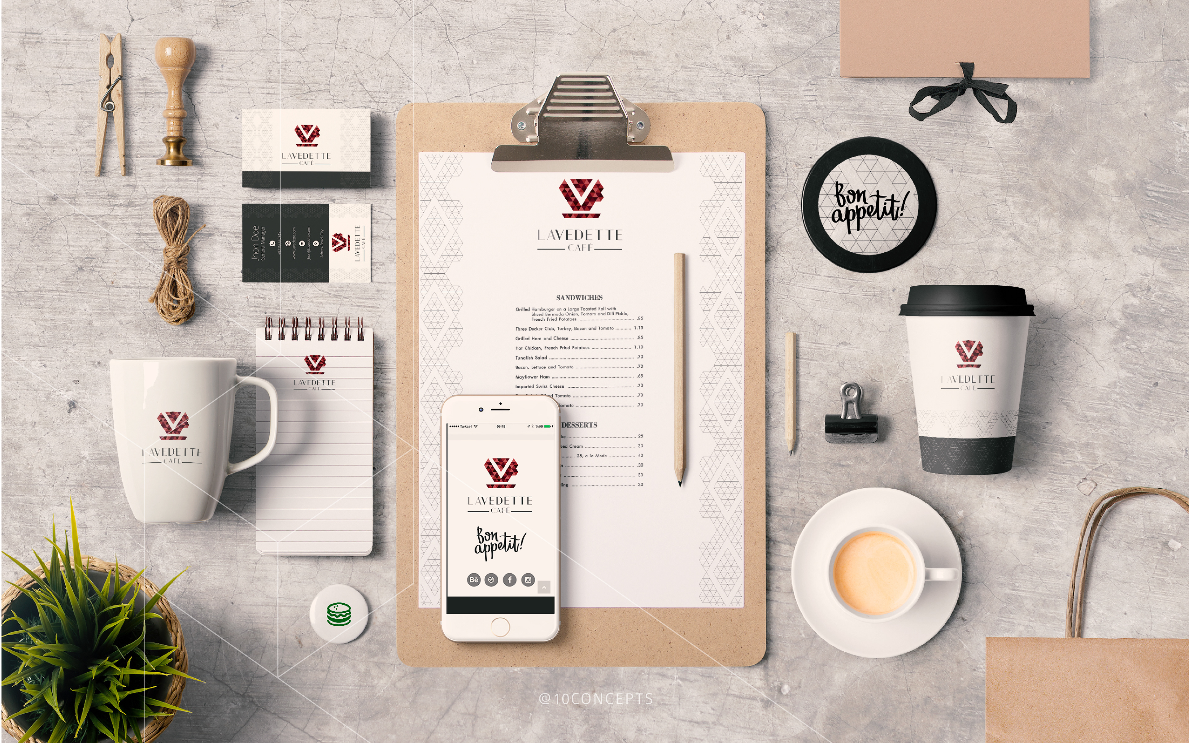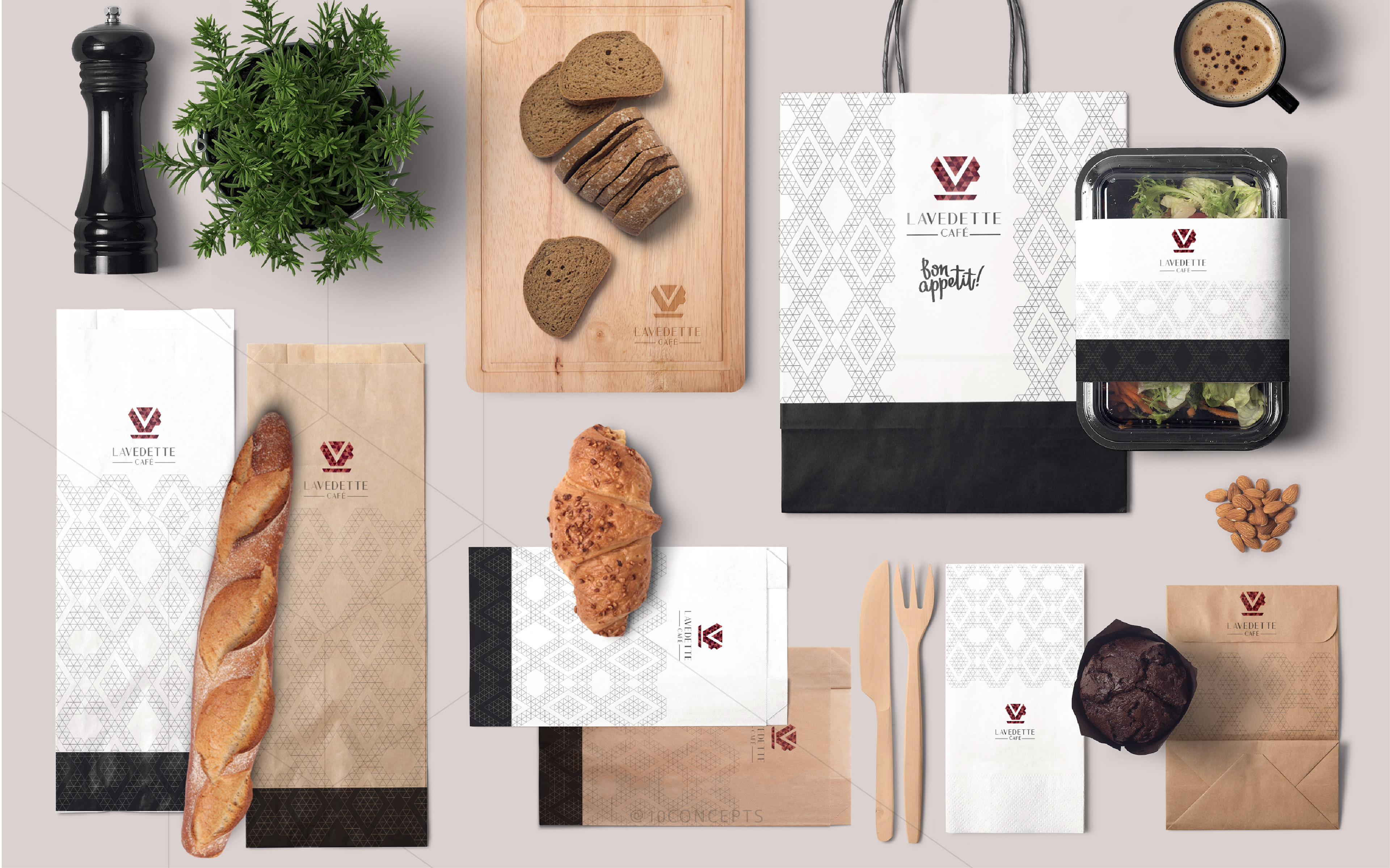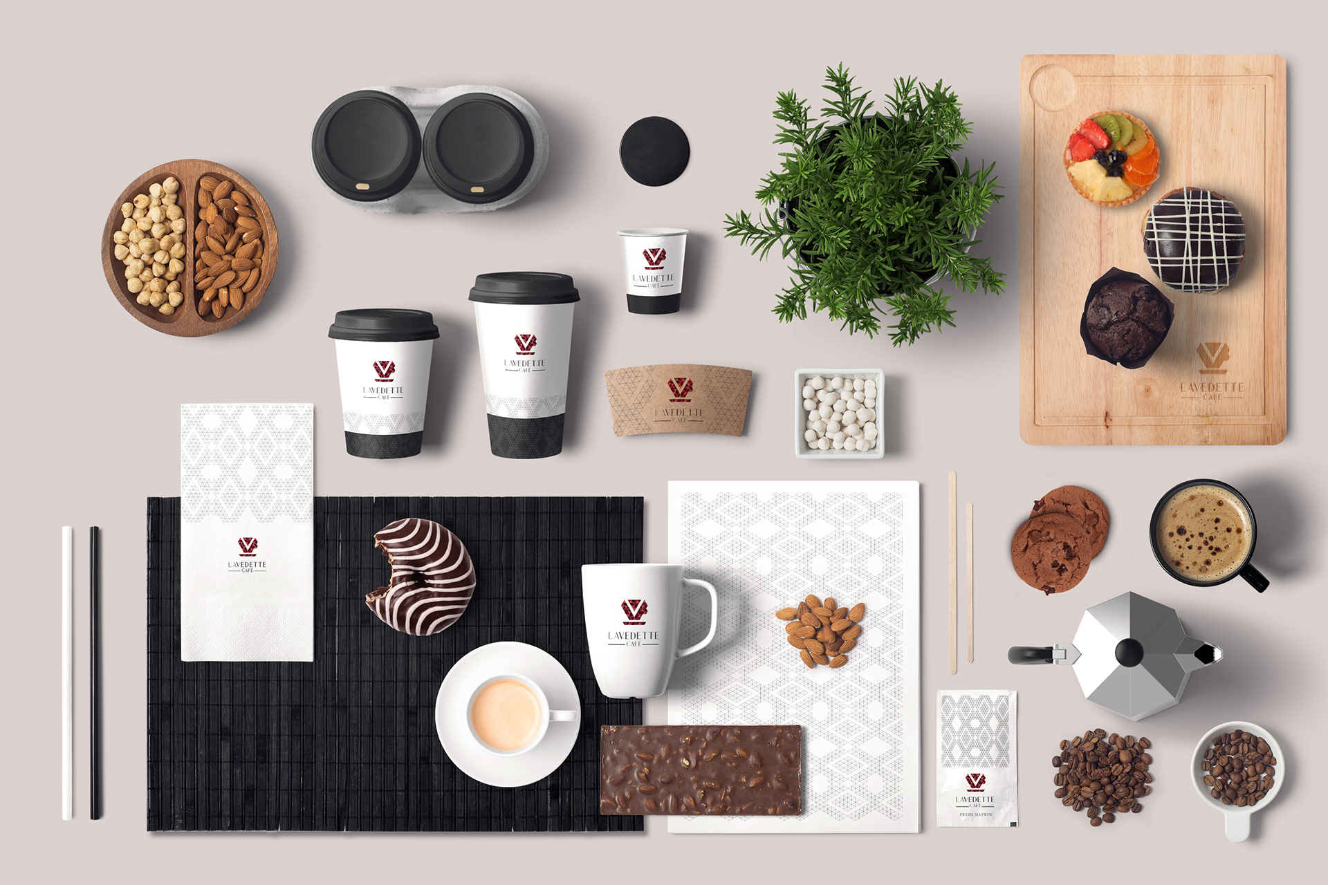 Identity and packaging design for Lavedette Café in Dubai.